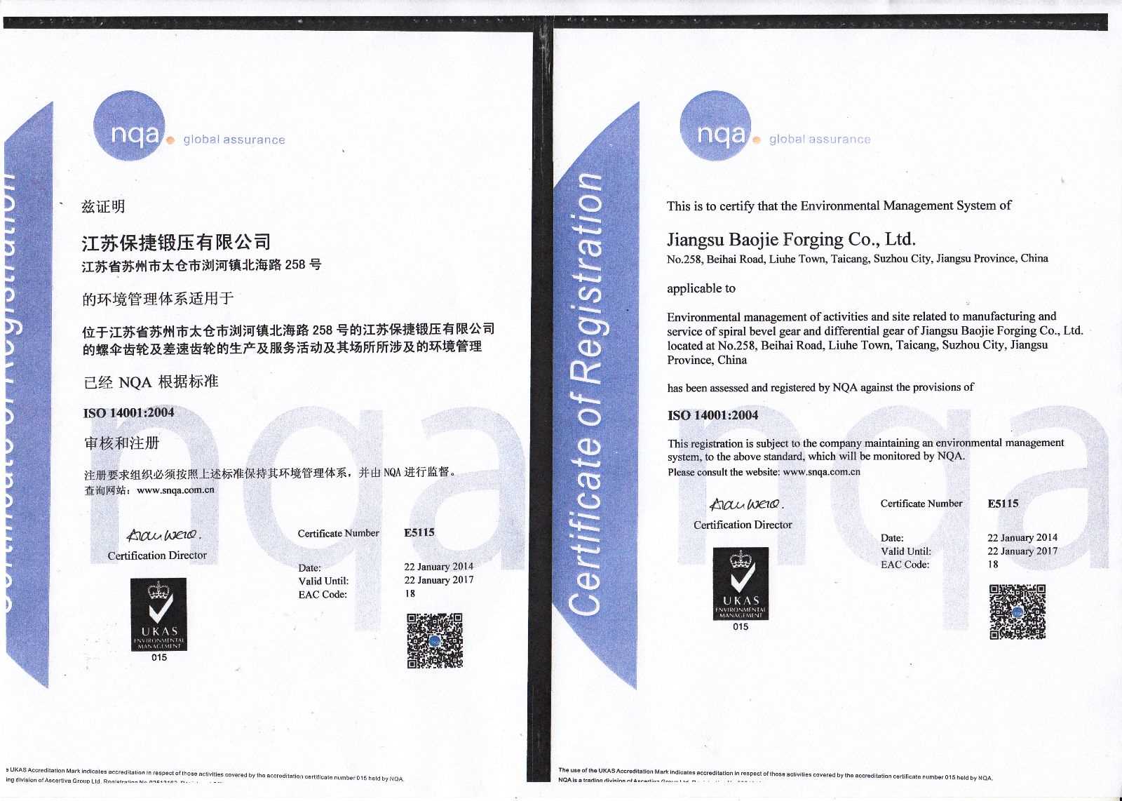 江蘇保捷鍛壓有限公司資信等級為AAA級